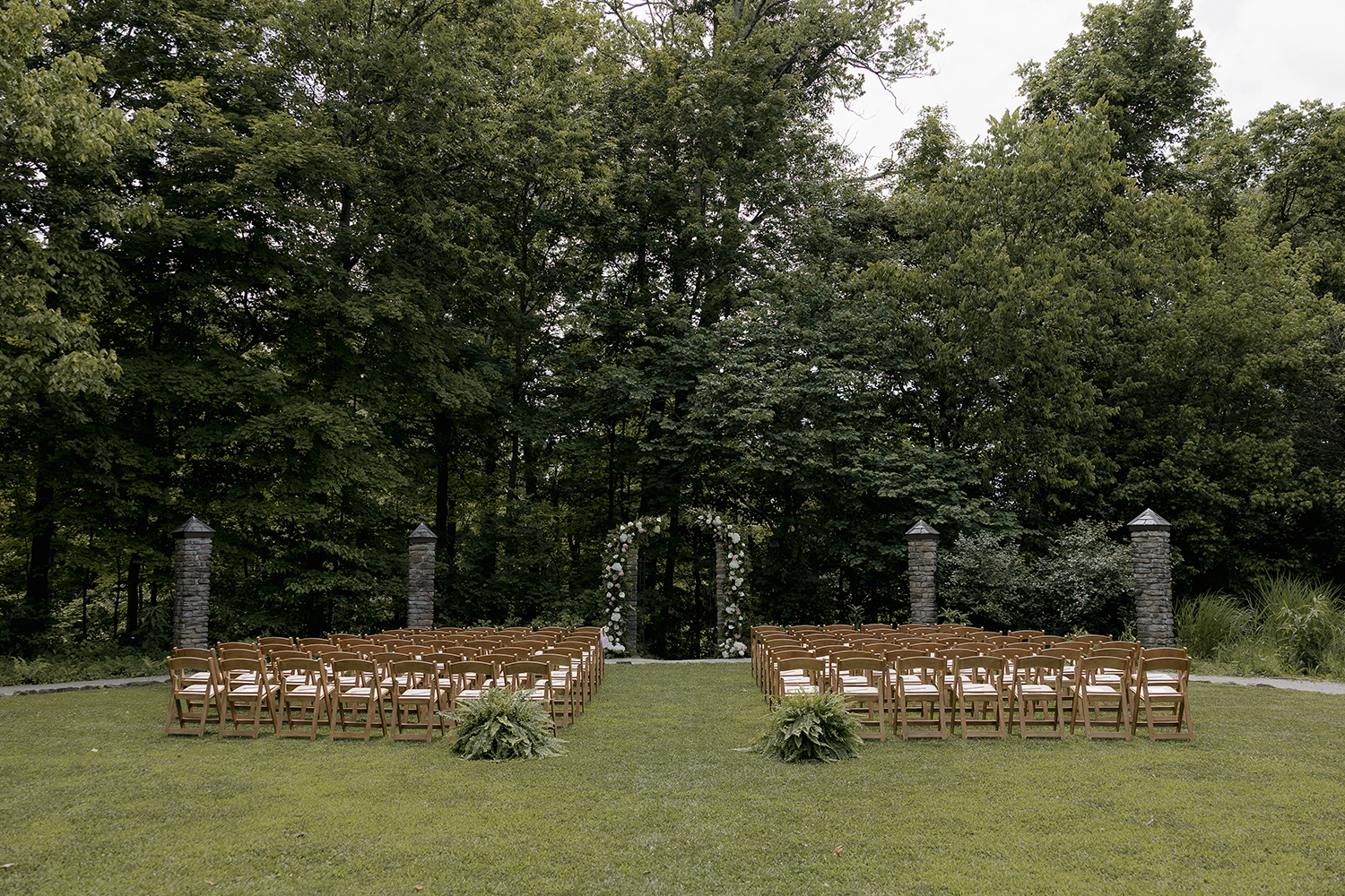Located in the front of the Groesbeck Estate is the Haile Pillar Garden. This circle of stone pillars offers a grassy space within, and can host up to 120 people seated theater-style. The circle garden is also a lovely outdoor option for wedding ceremonies, cocktail hours, breakaway work sessions, team-building activities, or awards ceremonies.